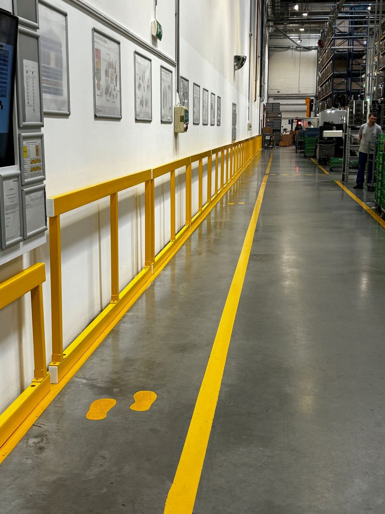 Az elkerítések egyértelműen szétválasztják a gyalogos- és gépi útvonalakat. Ez jelentősen csökkenti a balesetek kockázatát a mindennapi munkavégzés során.